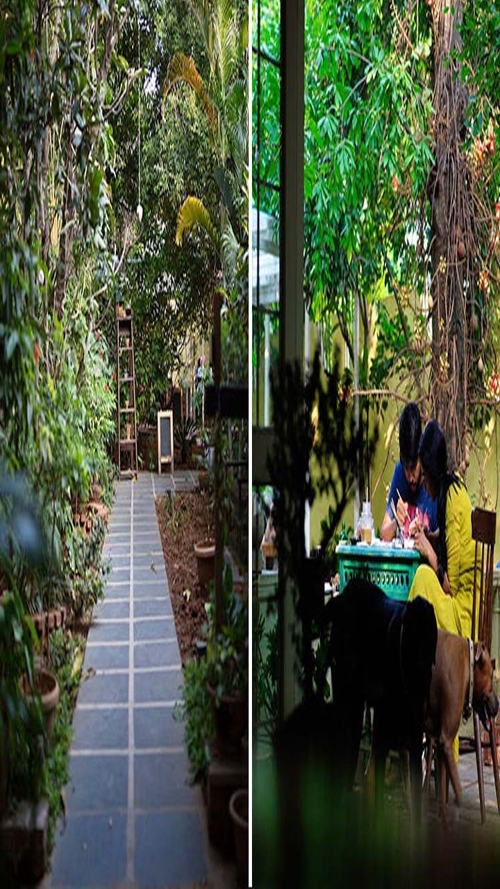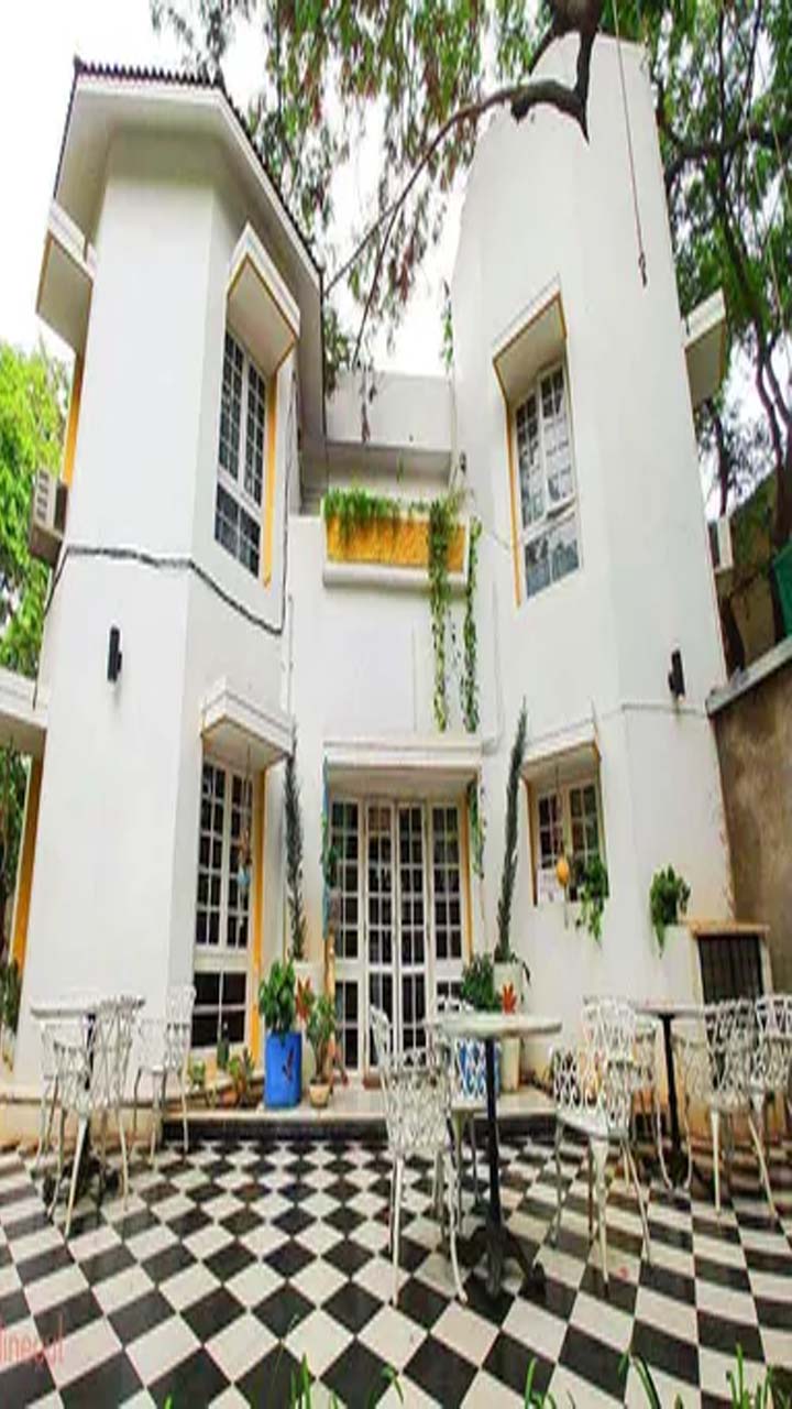 Autumn Leaf Cafe -Jubliee hills ,Moody American cafe in a heritage mansion with some open-air seating amid plants.